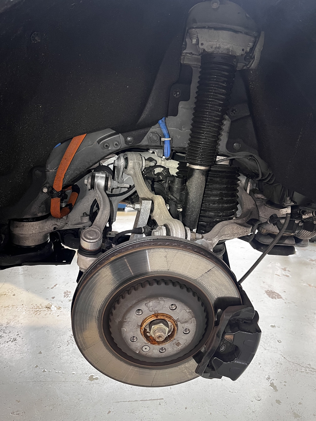 Austausch von Scheiben, Belägen, Bremsflüssigkeit sowie ABS/ESP-Diagnose.